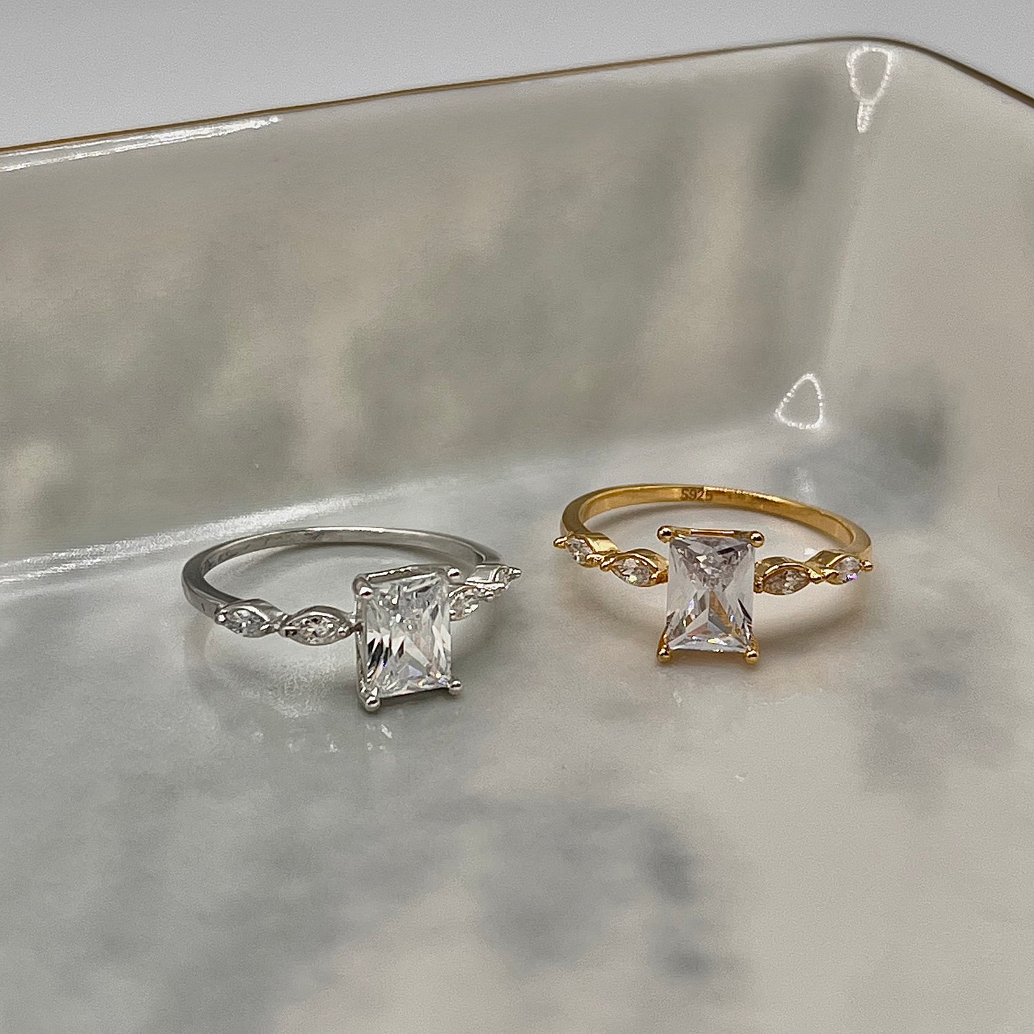 Meet our Aura ring. This beautifully designed ring is perfect to treat someone or treat yourself. This dazzling CZ stone is paired with a pretty embellished band to give you the ultimate piece for your hands, that shines wherever you go.
